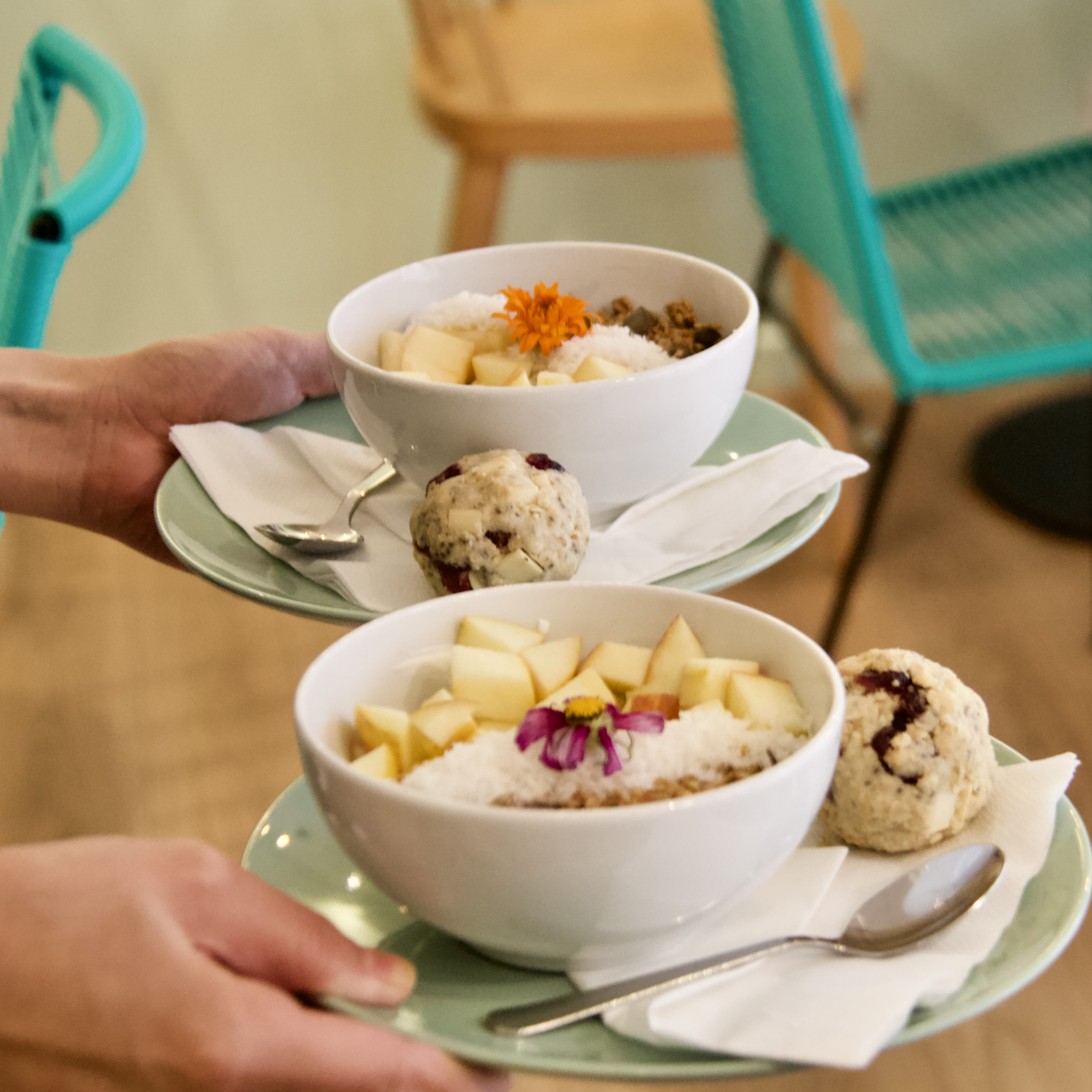 Nos recettes sont élaborées avec des ingrédients de qualité, de saison et majoritairement issus de l'agriculture biologique. Tout est fait maison et nous portons une attention particulière à l'équilibre de votre assiette en veillant à inclure toutes les habitudes. Que vous soyez flexitarien, végétarien, vegan, carnivore, sachez qu'il y aura toujours une option pour vous !